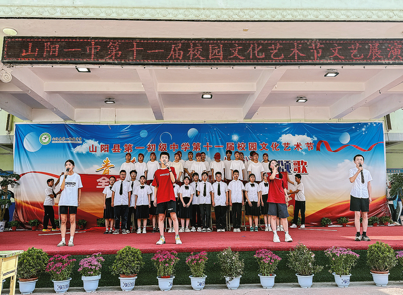 5月7日,山陽縣第一初級中學舉行第11屆校園文化藝術節。廣大師生將中華優秀傳統文化融于精彩的表演中,展示校園精神文明建設和素質教育成果,引導學生抒發愛國情懷、爭做陽光青少年。 (本報記者 黨率航 攝)