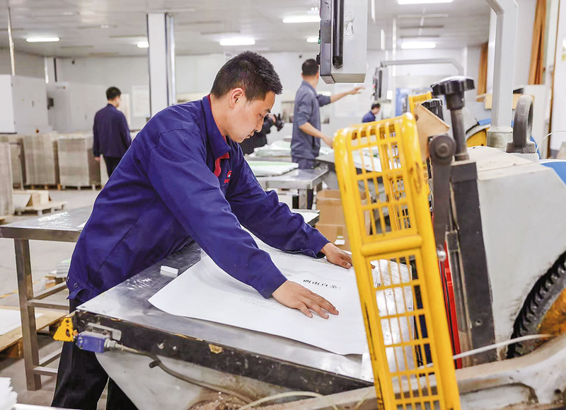 5月10日,位于商南縣的陜西柏倫包裝產業園內,工人在制作農產品包裝盒。