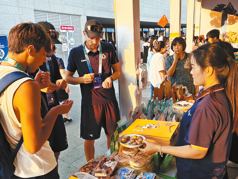 本報記者 方方 見習記者 楊若陽 8月28日,夜幕降臨后的沙灘排球集市人頭攢動。國外的運動員、外地的游客、本地的群眾……都因這場盛大而隆重的體育賽事歡聚在這里。 “老板,這個怎么賣?...
