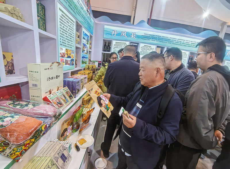 商洛展區內各類優質農產品琳瑯滿目,展位前人氣滿滿,大家對商洛特產贊不絕口。