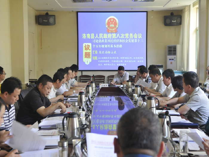 2015年6月10日,縣政府召開第八次常務會議。會議討論了洛南縣國民經濟和社會發展第十三個五年規劃的基本思路,研究了全市招商引資工作會議精神暨我縣貫徹意見及我縣“雙包雙促”精準扶貧及下一步工作意見。