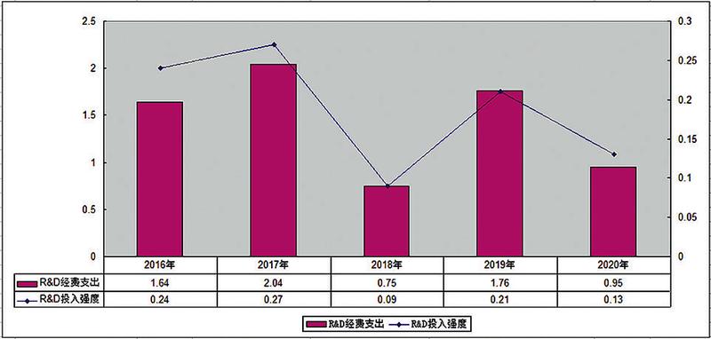 2020年,我市全社會科技與研發經費支出0.95億元,比上年減少0.81億元,同比下降46%;科技與研發經費投入強度為0.13%,比上年減少0.08個百分點。無論是科技與研發經費支出,還是投入強度都處于近年來的低位。商洛市2016—2020年科技與研發(R&D)活動情況