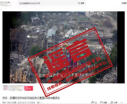詳情:4月7日、8日,新疆阿克蘇地區拜城縣先后發生5.4、5.1級地震。震中位于無人區,目前暫未收到人員傷亡或財產損失報告,當地通訊、供電、交通正常。但有部分自媒體為博眼球、蹭流量,利用AI智能技術等手段拼湊網絡舊圖,發布拜城地震不實圖文、音視頻等信息,嚴重誤導網民。阿克蘇地區互聯網信息辦公室提醒,對在網上蓄意編造、傳播散布謠言,擾亂公共秩序等違法行為,網信部門將會同公安機關依法嚴厲打擊。(來源:“新疆網絡辟謠”微信公眾號)