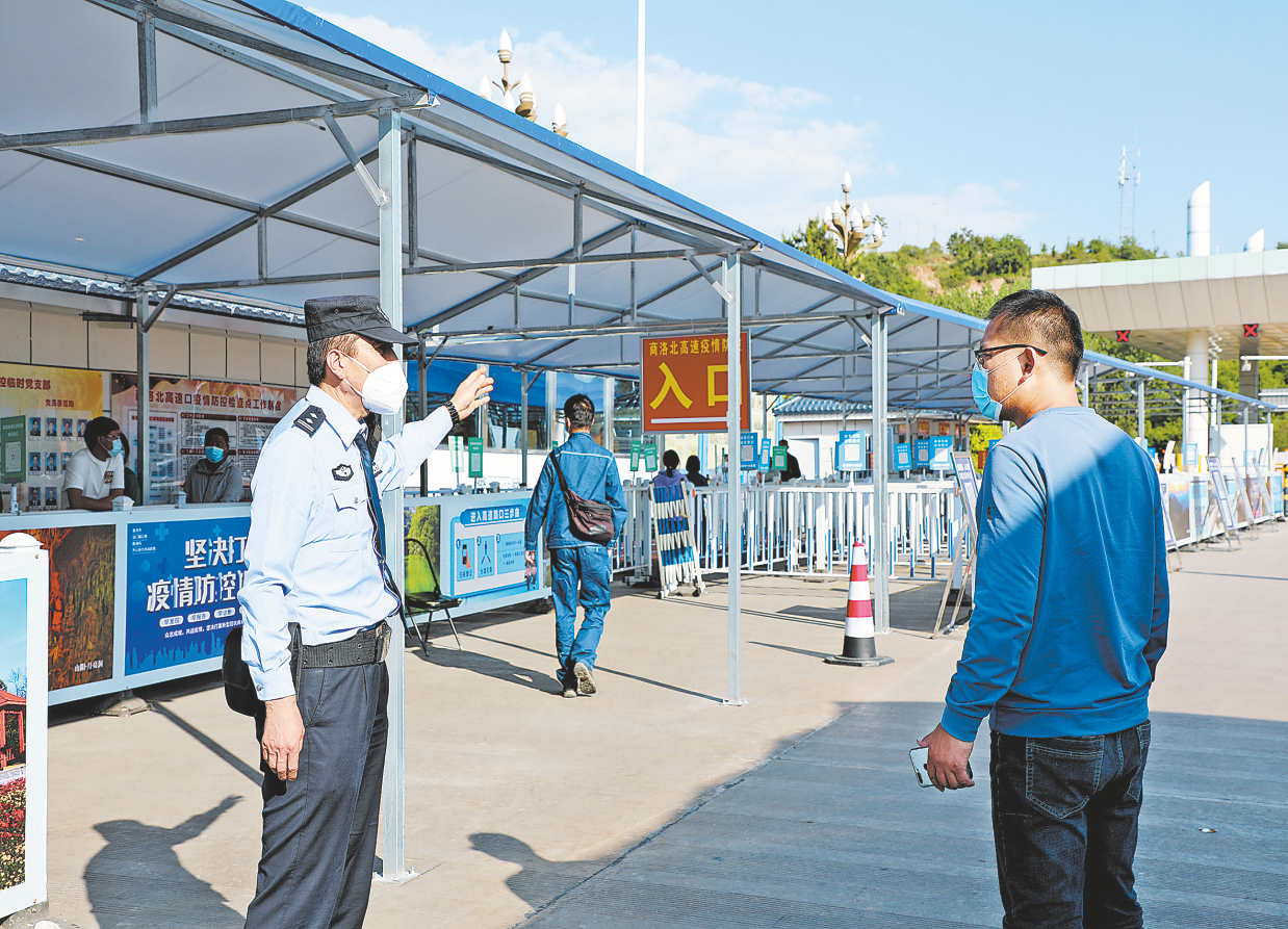 在高速路口執(zhí)勤,有時(shí)候會(huì)面臨一些“挑戰(zhàn)”。4月3日,清明節(jié)放假第一天,魚(yú)建發(fā)值中班,下午7點(diǎn)多車(chē)流量突然增多,出站口的廣場(chǎng)上停滿了車(chē),一時(shí)間非常擁堵,掃碼登記和核酸登記口的隊(duì)伍已經(jīng)排到了百米外。面對(duì)工作人員不足的情況,魚(yú)建發(fā)立即呼叫周邊巡邏民警前來(lái)支援。隨即,他又建議城管局調(diào)來(lái)護(hù)欄,設(shè)置道卡,實(shí)施硬隔離。這個(gè)想法得到了帶班領(lǐng)導(dǎo)的肯定,護(hù)欄到位后,他們迅速安排,連夜設(shè)置了S彎道卡,忙完已是凌晨?jī)牲c(diǎn)多。“當(dāng)時(shí)情況還是比較緊急的,人員密度非常大,我們?nèi)绻徊扇〈胧f(wàn)一出現(xiàn)疫情,將會(huì)造成非常大的麻煩。”魚(yú)建發(fā)說(shuō)。
