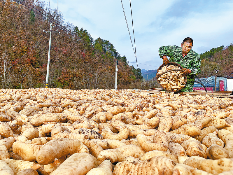 蒸煮、晾曬天麻。(本報通訊員 王盈琳 攝)