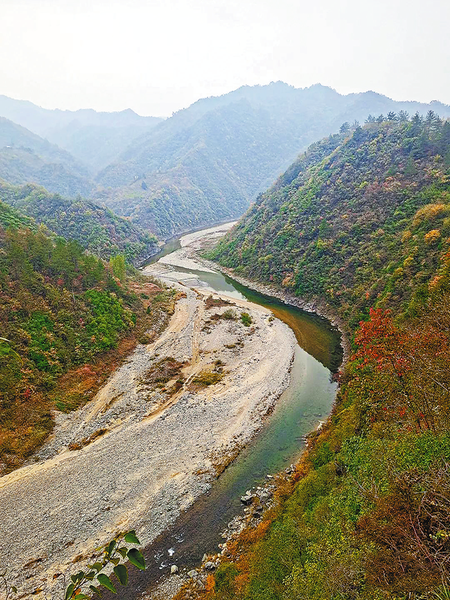 在這個千山沉靜、萬壑掛彩的季節,我冒著沉沉的霧氣,從西磨溝口伴著武關河順流而下20多公里,來到武關河下游第一村——商南縣金絲峽鎮二郎廟村。
