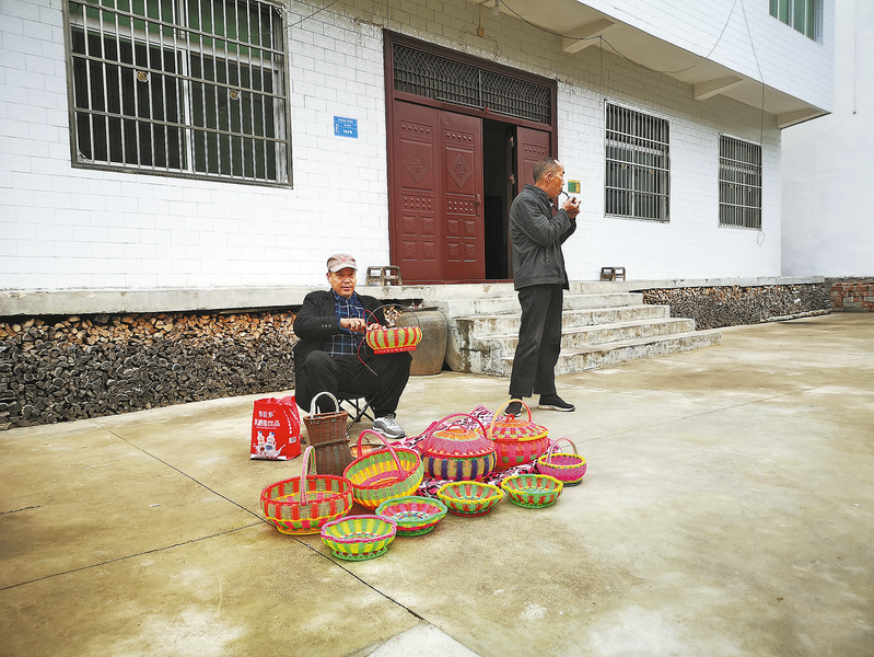 今年50多歲的柯安民就是一位竹編手藝人,經他手編織的竹編、塑料編成了一件件工藝品,在包扶單位市供銷社的幫助下供不應求,同時村上還成立了電商中心,村民的手工鞋、竹編、草鞋等通過電商中心向外不斷銷售。