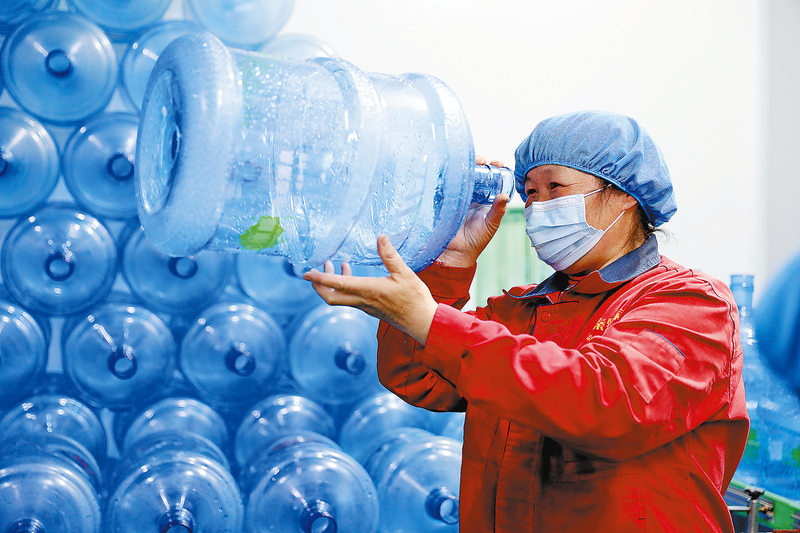 “巖層自涌泉水經過原水箱、石英砂過濾、活性炭處理等多道工序后,‘秦嶺活泉’‘秦臻山泉’就被運往商洛市內以及西安、天津等地。這口泉水是天然的,水質優,基本無雜質,一年四季不枯竭。”陽河村黨支部書記張小軍說,“陽河村曾是深度貧困村,80%以上屬于坡地。2018年,我們招商引資建成了這個水廠,目前水廠年收益200萬元不成問題。村上向水廠注資120萬元,每年分到7.2萬元紅利。脫貧戶有8人在水廠務工,人均月收入2200元。”