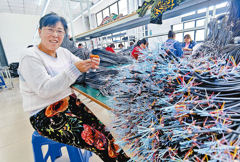 “原材料拉來后,經過去外皮、剪編織、包銅箔、挑鋁箔、分線、激光、排線等40多道工序后,一條條高清數據線就算完工。這些數據線主要用于電視、電腦和播放器。加工后的產品會及時運往東莞市,最后由總公司統一銷往東南亞和歐美。”商洛萬朋輝電子有限公司負責人易仕平說,目前有60多個固定員工在這里集中加工產品,還有100多名“外發”人員把原材料拿回家加工,最后計件付工資,這樣靈活的加工模式,讓村民顧家、掙錢兩不誤。