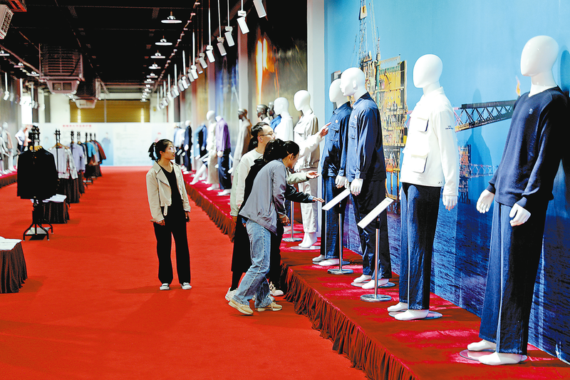 △作為社區工廠的陜西雅爾艾醫療用品有限公司生產紡織、勞保、軍需、時裝等產品,吸納60名群眾就業,人均月工資3000元左右。圖為該公司的產品展廳。