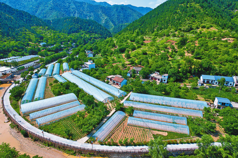 今年以來,丹鳳縣蔡川鎮留仙坪村依托資源優勢,把紅色美麗村莊建設與鄉村振興有機結合起來,大力發展大櫻桃、冬棗、西瓜等設施林果及蔬菜產業,加快村集體經濟轉型,推進一二三產融合發展。圖為六月二十六日拍攝的留仙坪村設施農業大棚。(本報記者米子揚攝)