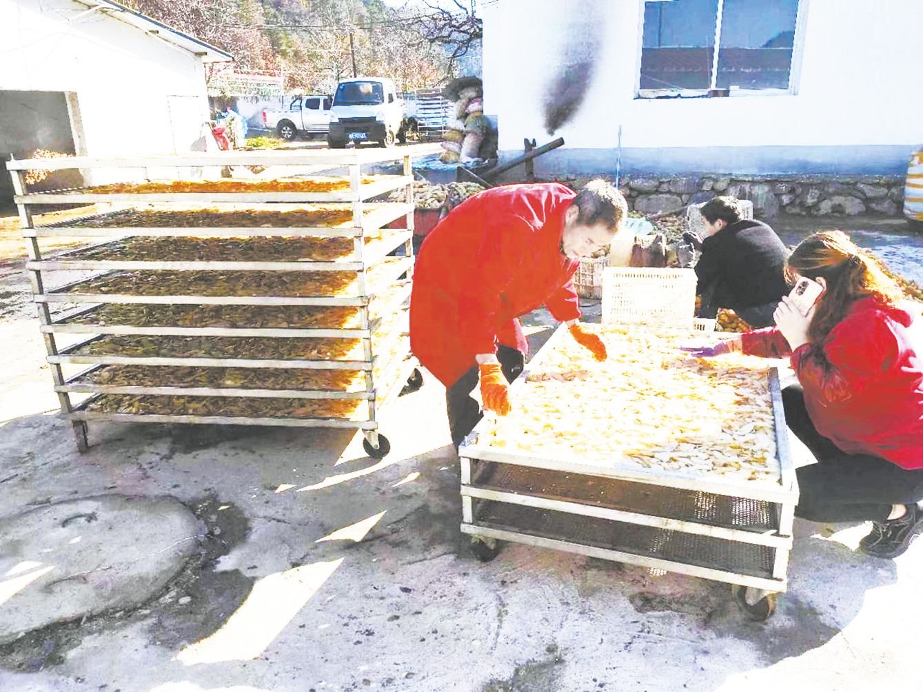 初冬的丹鳳縣武關鎮梨園村,清新的空氣中夾雜著泥土的氣息,在茂密的樹蔭下,一片片天麻已然“蘇醒”,翹首等待采收。