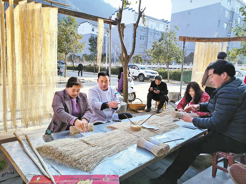 丹鳳縣竹林關鎮素有制作手工掛面的傳統,每年冬天,掛面晾曬場景就會成為一道亮麗的風景線。圖為一月十一日,村民在對掛面進行晾曬、包裝。(本報通訊員張寧攝)