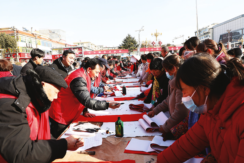 “內(nèi)外平安好運(yùn)來,合家歡樂財源進(jìn)”“龍騰云海國昌盛,春滿人間民泰安”……一副副飽含祝福的春聯(lián),一張張遒勁有力的“福”字,伴著濃濃墨香躍然紙上。大家自覺排隊(duì)領(lǐng)取作品,個個臉上洋溢著幸福的笑容。當(dāng)天,書法家們共創(chuàng)作春聯(lián)、“福”字、書法作品800余件,全部無償贈送給群眾。