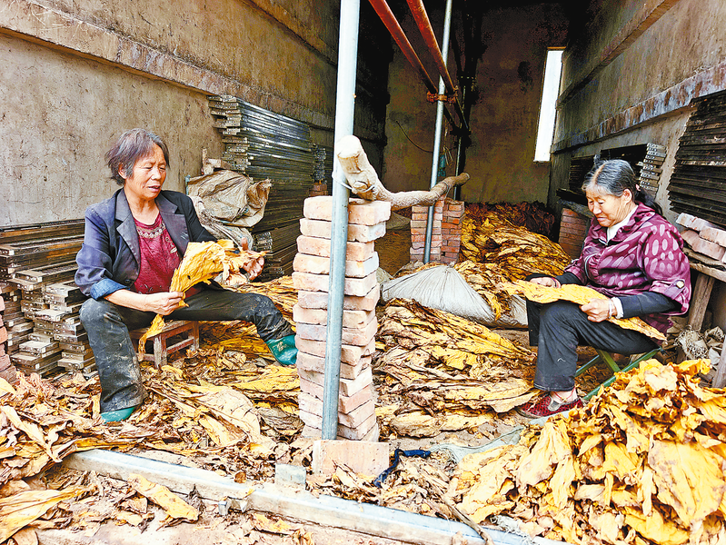 9月10日,洛南縣四皓街道村民正在分揀烘干后的煙葉。據了解,今年四皓街道發展烤煙1.2萬畝,600多戶農戶從事烤煙種植,預計戶均年收入12萬元,是群眾穩定增收的主導產業。 (本報記者 楊 鑫 攝)