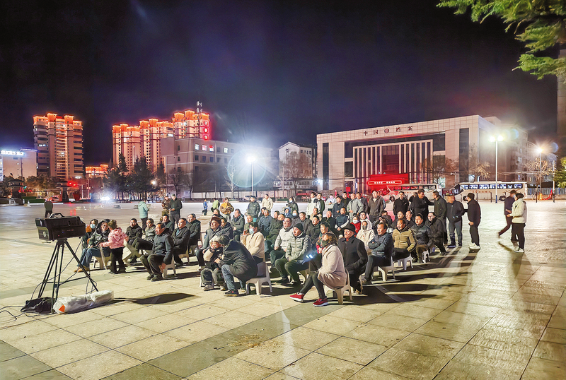 11月18日至19日,2025年度全市農(nóng)村公益電影放映技術(shù)與服務(wù)培訓(xùn)班在洛南舉辦。圖為11月18日晚,在洛南縣城關(guān)街道劉澗社區(qū)開展的放映觀摩活動。