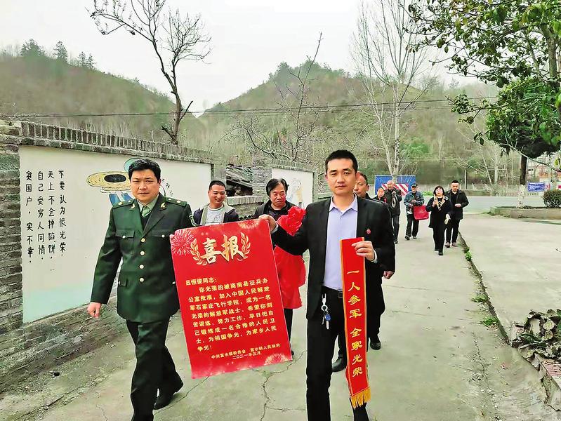 本報訊(周衍江黨世凱)鑼鼓喧天,鞭炮齊鳴。3月17日,商南縣富水鎮(zhèn)沐河村現(xiàn)役軍人家屬馬光明、陳海英夫婦家異常熱鬧,村民們敲鑼打鼓、載歌載舞,為現(xiàn)役軍人家屬送喜報。