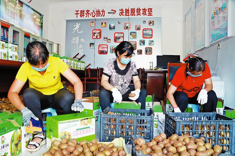 “裝完這筐就返回村委會,再進行套網、裝箱。已經聯系好貨運車,下午就發往西安。”江西溝村黨支部書記、村委會主任楊大安說,“馬上過中秋,這幾天線上線下銷售十分繁忙,西安客戶知道這里的狝猴桃肉甜、細嫩、口感好,具有狝猴桃原生態風味,還來村里采購。村上狝猴桃集體經濟產業能順利發展,多虧商南縣政府辦的大力扶持。”
