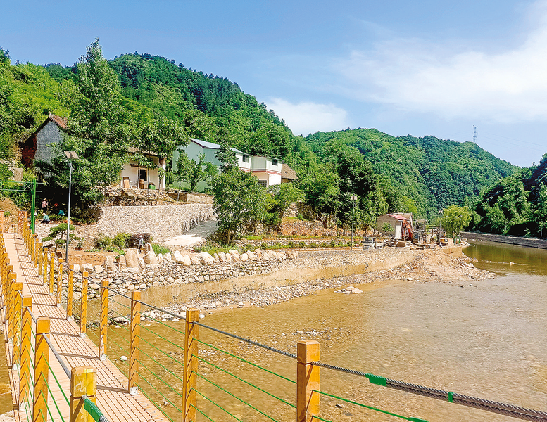 7月20日,在商南縣清油河鎮澗場村施工現場,機器隆隆作響,車來車往,施工人員正在忙碌地進行作業,綠化河道環境、砌花壇、建涼亭……這是澗場村按照清油河鎮“一山一河一路”發展流域經濟總體規劃,以“兩改兩轉三促進”為抓手,實現昔日“爛河灘”向今日“生態園”的完美蝶變。