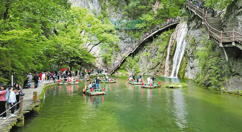 “五一”假期,商南縣各景區(qū)景點(diǎn)產(chǎn)品供給豐富,為游客出游提供了更多的新場(chǎng)景、新玩法和新體驗(yàn),文旅市場(chǎng)活力十足,消費(fèi)持續(xù)升溫。圖為游客在金絲峽景區(qū)游玩。(本報(bào)通訊員 景鑫 攝)