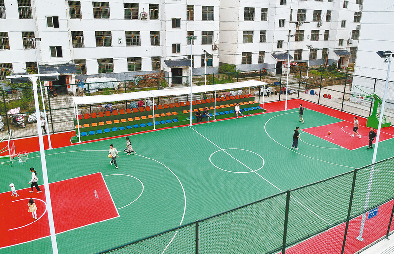 十里坪社區(qū)黨支部書記曹宗仁介紹,去年,社區(qū)修建了游步道,群眾閑暇之余跑步健身、散步聊天,體驗感很好。今年,為了更好地豐富群眾的業(yè)余生活,社區(qū)將運動場建設(shè)作為2024年承諾的10件實事之一,規(guī)劃建設(shè)懸浮式籃球場,配套羽毛球、乒乓球標準場地,進一步完善基礎(chǔ)設(shè)施建設(shè),夯實鄉(xiāng)村振興發(fā)展“主陣地”。其中,籃球場位于人員居住密集的移民小區(qū)廣場,場地和外圍的環(huán)形跑道渾然一體,是廣大群眾茶余飯后的主要休閑場所。