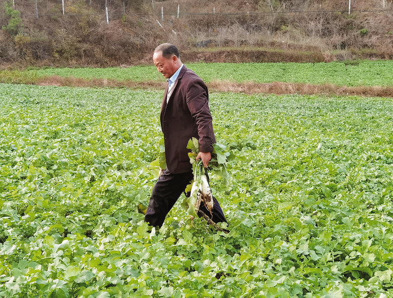 “如果有經(jīng)銷商上門收購,咱們的蘿卜立即都能出售,基本上已經(jīng)成熟了。”“你們采收時注意,及時跟廠商保持聯(lián)系,保證這個產(chǎn)品質(zhì)量,必須保質(zhì)保量地叫人家運回去……”10月24日,在商南縣十里坪鎮(zhèn)梁家墳村供港蔬菜基地,鎮(zhèn)村干部正在查看供港蔬菜長勢,商討采收事宜。
