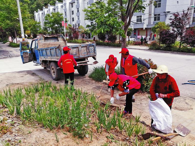 半個月后,僅色河鋪社區就動用鏟車、鉤機、翻斗車、清掃車等多臺設備,一次性將社區生產生活垃圾清理到位,還在農戶庭院、社區道路兩側和移民小區修建圍欄2000米,栽種各類苗木1000多棵、花卉800多株。集中整治活動結束后,為了長期保持環境衛生整潔,社區選用了兩名年齡較大、有威望的貧困戶組建衛生監督管理隊,定期清掃街路,督促村民形成自覺維護環境衛生的良好習慣。