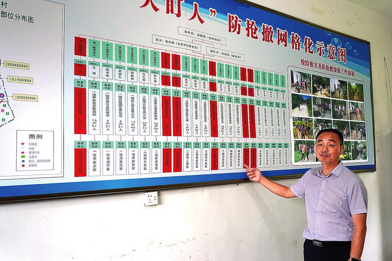“為保障人民群眾的生命財產安全,按照‘寧重勿缺、不漏一人’的原則,將全鎮22個村(社區)14536戶43940名群眾,劃分‘人盯人’防搶撤片區730個,設立撤離安置點424個,安排盯撤責任人789人,并逐一配備保障物資、組織開展防搶撤應急演練,確保明顯雨情汛情來臨可防可控。特別是對轄區地質災害隱患點、道路交通、水庫、山洪溝域等防汛重點部位,劃出重點責任片區127個、重點避災安置點80個,安排包聯盯撤責任人149人,對2196戶8032人予以重點盯撤,在明顯雨情汛情來臨前,第一時間預警、第一時間布防、第一時間撤離。”董善平告訴記者。