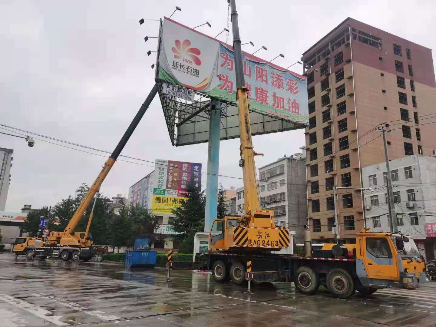 在拆除安全保障上,山陽縣城管局聘請西安、商州專業公司,發揮安全技術優勢進行高空作業。同時,該局精心組織,精細施工,明確分工,協調公安、交警警示警戒,維護社會治安和交通秩序,確保拆除違規戶外大型廣告牌無安全事故發生。