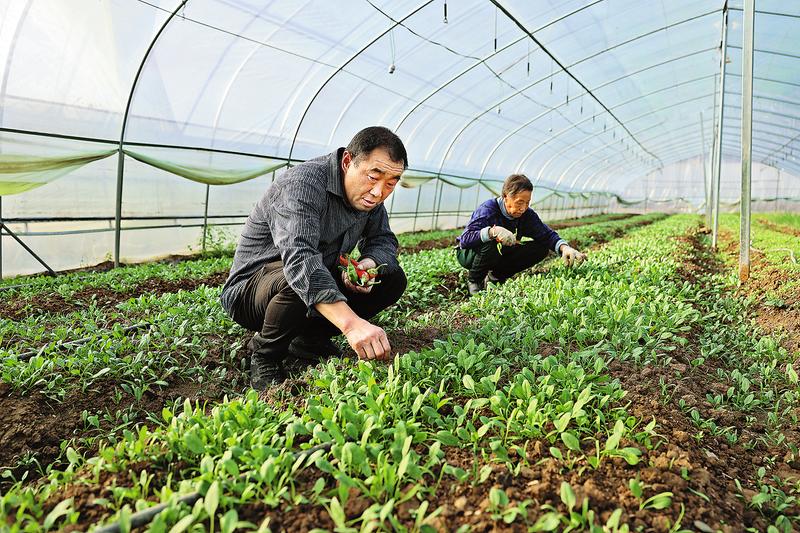 10月30日,在山陽縣色河鋪鎮陸家灣村大棚蔬菜基地內,工人正在對大棚蔬菜進行田間管理。近期,該基地內辣椒、豆王、莜麥菜、圣女果陸續成熟,每天可產出300多公斤蔬菜,帶動每位務工人員每天收入80元。(記者 李敏 攝)