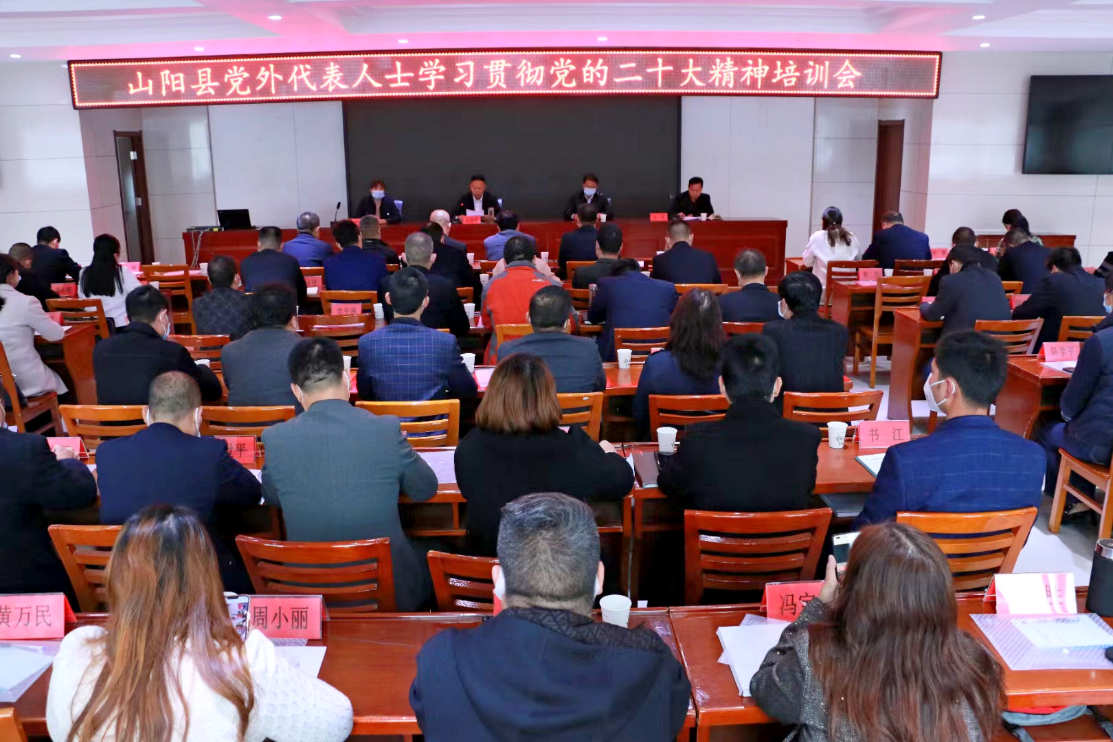 11月1日,山陽縣委統(tǒng)戰(zhàn)部舉辦全縣黨外代表人士學(xué)習(xí)貫徹黨的二十大精神暨中央統(tǒng)戰(zhàn)工作會(huì)議精神培訓(xùn)會(huì),縣委常委、統(tǒng)戰(zhàn)部長伍淑軍出席會(huì)議并作動(dòng)員講話,縣委統(tǒng)戰(zhàn)部常務(wù)副部長王軍主持會(huì)議。特邀商洛市委黨校副校長、教授魚先鋒和市委黨校經(jīng)濟(jì)學(xué)教研室副主任、副教授陳永芝分別作專題培訓(xùn)講座。全縣黨外科級(jí)干部、無黨派代表人士、民營經(jīng)濟(jì)代表人士、新聯(lián)會(huì)代表人士、宗教團(tuán)體負(fù)責(zé)人、縣委統(tǒng)戰(zhàn)部和縣工商聯(lián)全體干部等,共80余人參加學(xué)習(xí)培訓(xùn)。