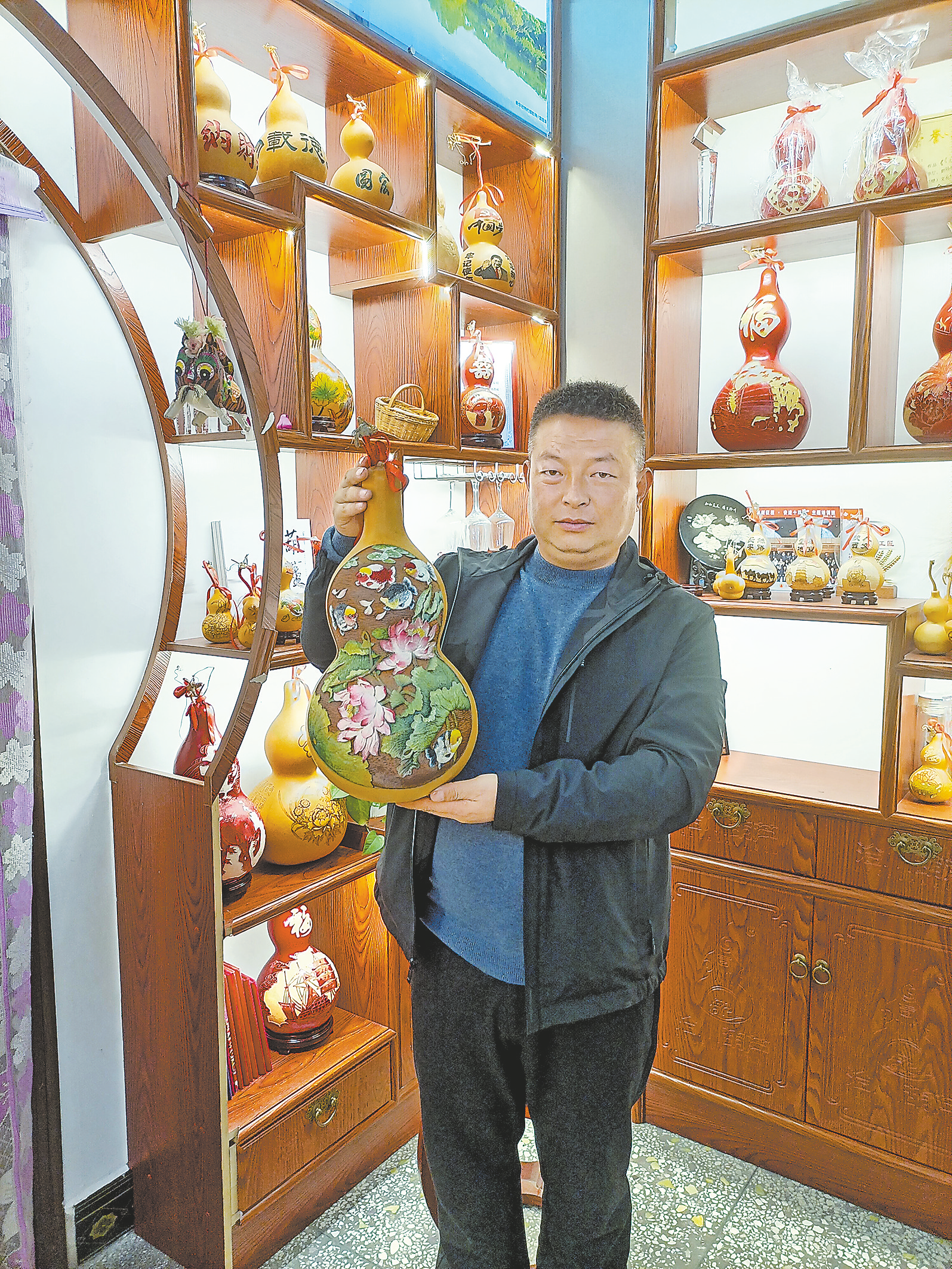 “每個葫蘆我都有編號,每個階段它長成了什么樣子,我都一一拍下來,放在網絡上,關注的人很多。”謝培廣說,一個葫蘆要成為精美的工藝品,要經過去皮、晾干、再加工。而葫蘆工藝品也分天然葫蘆、雕刻、彩繪、勒扎葫蘆等,經過加工后,葫蘆的價格也會翻倍。
