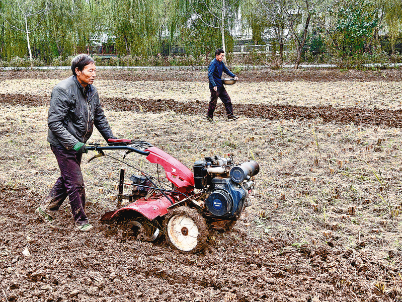 11月19日,在商州區三岔河鎮閆坪村稻蝦共生休閑露營地內,工作人員一邊使用小型旋耕機翻地,一邊播撒黑小麥種子。據了解,該基地在水稻收割結束后引進“藥食同源”谷物黑小麥,計劃種植30多畝,可帶動周邊10多名群眾實現家門口務工增收。 (本報記者 王孝竹 攝)