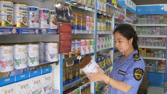 執法人員對嬰幼兒配方乳粉進行抽樣檢查
