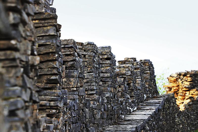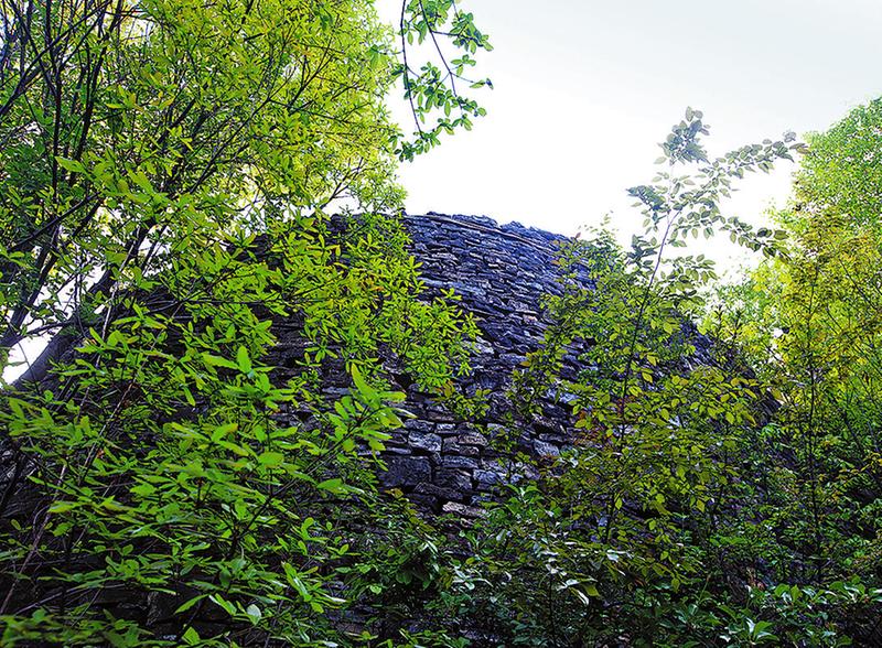 我們來到位于鎮安縣米糧鎮的西寨,山巔樹木橫生,寨墻高聳,散發著金屬光芒的黑色片石一層層壘砌成寬厚的鐵壁,顯得雄渾壯觀。西寨建在山脊上,易守難攻。據了解,這個山寨是當地群眾為躲土匪侵擾而建,寨內機關重重。如今,寨門左面內側還留有幾孔外小內大呈斗形的射擊孔。寨墻上有防翻石沿,寨門上方設有洞口,都有抵御外敵的作用。