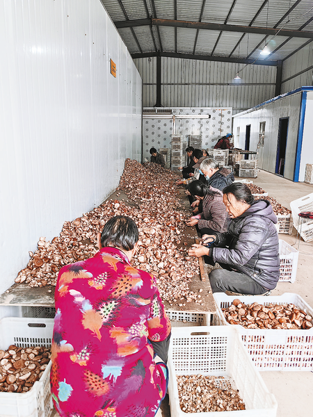 木王鎮(zhèn)瑞泰恒豐香菇廠農(nóng)戶正在分揀香菇