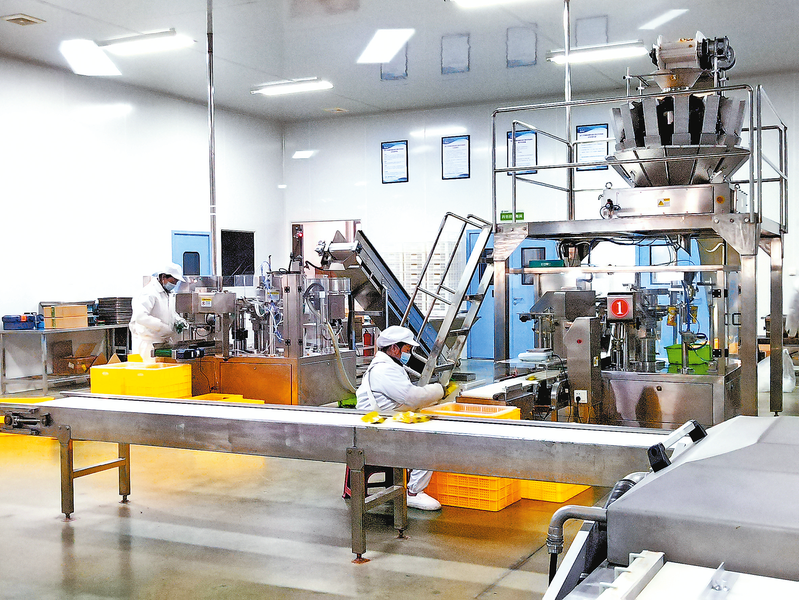 1月5日,鎮安縣陜西合曼農業科技有限公司食品加工車間內,工人正在流水線上作業。該公司立足本土特色資源,聚力推進板栗、核桃等特色產品深加工,其所持有的“合曼萬家食客”商標被評為2023年“陜西好商標”。 (本報通訊員 楊建東 攝)
