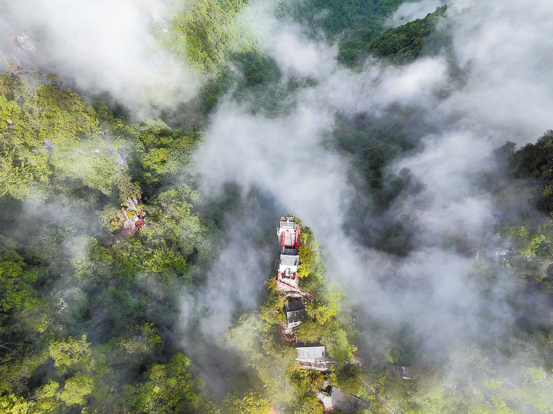 8月31日,早晨的陽光穿破云霧,灑在塔云山的金頂。夏秋交接,鎮安塔云山獨特的地理環境,迎來最佳觀賞季。峽谷和奇峰形成了獨特的云海奇觀,塔云山金頂在云海中忽隱忽現,宛若仙境。