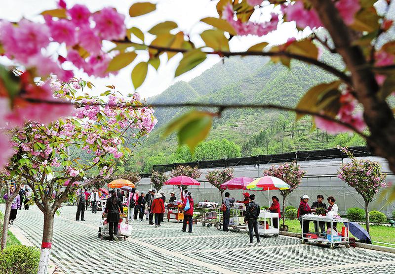 與一年前相比,記者感受最深的是村子變得整潔漂亮,人氣爆棚。當(dāng)天雖然是周五,主題教育、參觀學(xué)習(xí)、觀光旅游的人潮,讓村子異常熱鬧。遠(yuǎn)看山清水秀,近見民舍整潔。村子櫻花簇簇,綠樹抽芽。路旁大片的地栽木耳菌袋已經(jīng)擺放整齊,在自動噴淋系統(tǒng)的水霧中,一朵朵木耳即將破袋而出。村民的一張張笑臉,游客的一聲聲驚嘆……讓金米村處處呈現(xiàn)生機、欣欣向榮的景象。