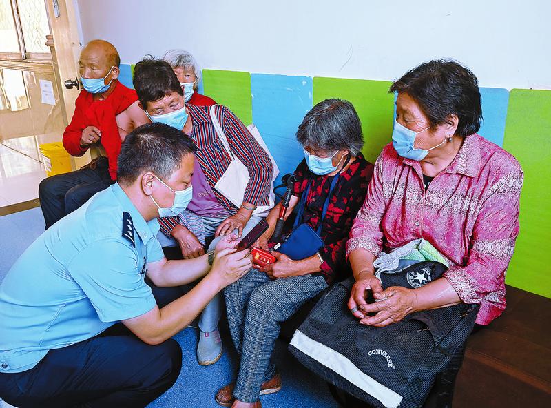連日來(lái),柞水縣公安局鳳鎮(zhèn)派出所全警出動(dòng),利用群眾接種疫苗、集中激活社保卡等時(shí)機(jī),向群眾普及預(yù)防電信詐騙知識(shí),指導(dǎo)安裝“國(guó)家反詐中心”APP,進(jìn)一步保護(hù)好群眾“錢(qián)袋子”。(李群 攝)